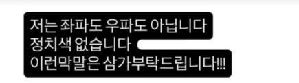 이지혜는 6일 개인 개정에 "나는 좌파도 우파도 아니다. 정치색 없다. 이런 막말은 삼가 부탁드린다"라는 글과 함께 한 장의 사진을 공개했다.