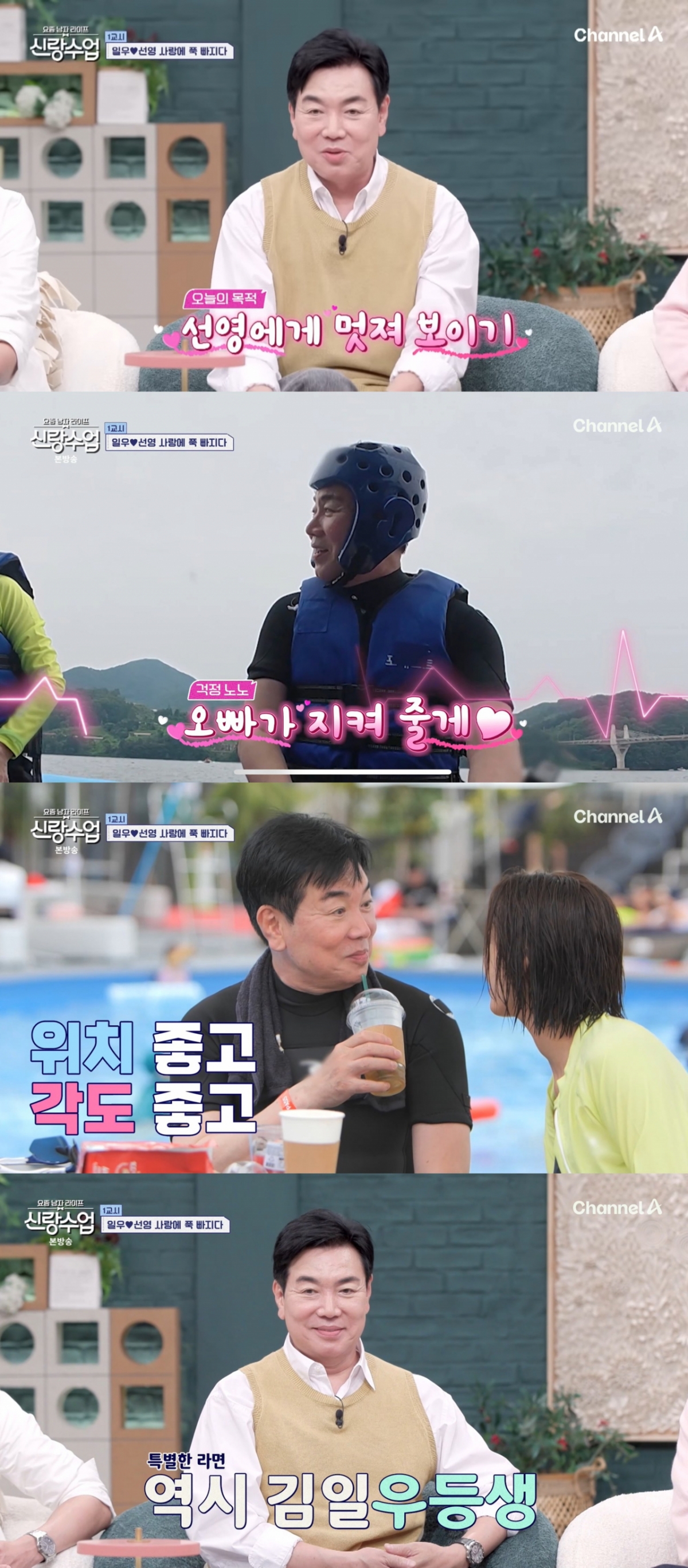 이날 김일우는 박선영을 살뜰히 챙기며 다정함을 뽐냈다. 그는 수상 기구를 타기 전 직접 박선영에게 구명조끼를 입혀주고, 넘어지려는 박선영의 손을 잡아주며 에스코트했다. 이어 김일우는 수상 기구를 타던 중 겁에 질린 박선영의 몸을 잡아주며 듬직함을 보였다.