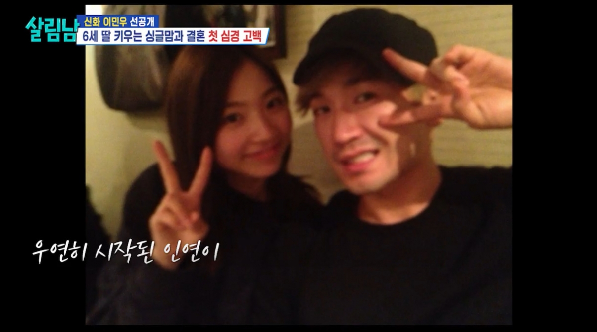 이어 이민우는 예비신부에 대해 "2013년도 1월 지인으로 만나서 자리를 했는데 그 자리에서 만났다. 홀몸이 아니다. 뱃속에 아이가 있다"라며 임신 소식도 털어놨다. 초음파 사진은 물론, 예비신부와의 셀카도 연달아 공개한 이민우는 "이 친구도 많은 힘든 시간을 보냈더라. 오랜만에 봤는데 딸도 있고 이혼도 했고"라며 예비신부가 싱글맘이라고 고백했다.