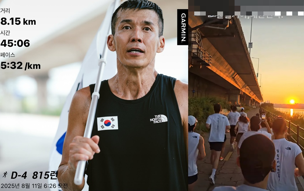 션은 "D-4. 아킬레스건과 발뒤꿈치 통증 이번에는 어쩔수 없지 가지고 간다. 2025년 8월15일 광복 80주년 6번째 81.5km 달립니다"라며 "어제는 잘 기억해야 합니다 오늘은 잘 살아가야 합니다 내일은 잘 준비해야 합니다"라고 전했다.