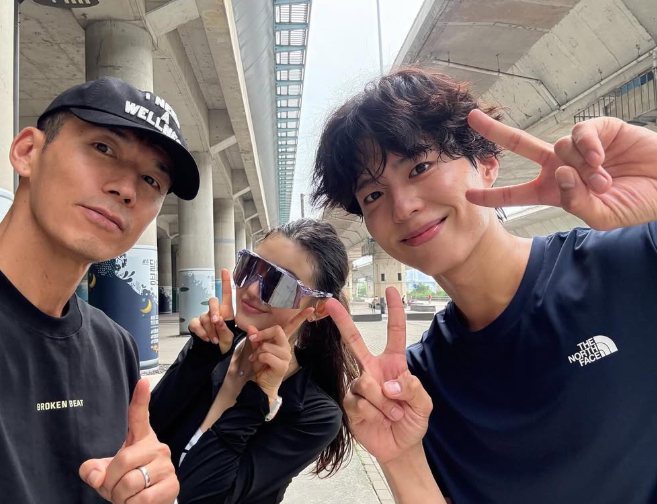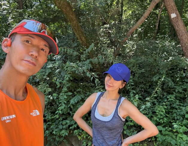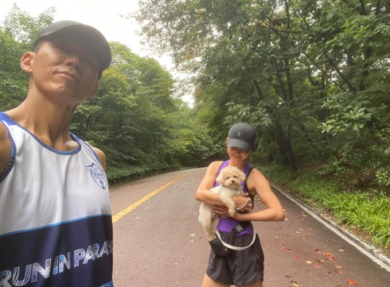 공개된 사진 속에는 이른 아침 남산에서 함께 러닝 중인 션 정혜영 부부의 모습이 담겼다. 정혜영은 반려견을 품에 안고 있어 눈길을 끈다.