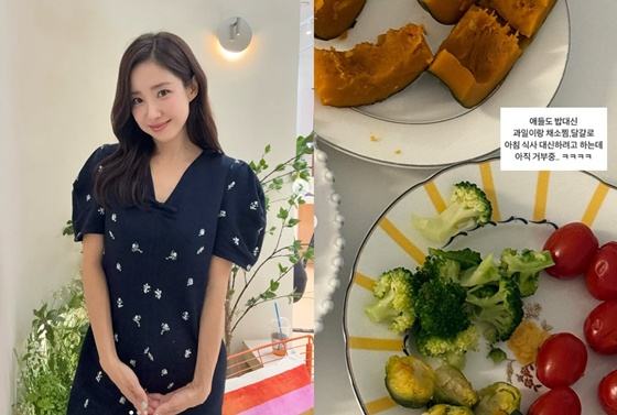 최희는 "애들도 밥 대신 과일이랑 채소찜, 달걀로 아침 식사 대신하려고 하는데 아직 거부 중"이라고 설명했다.