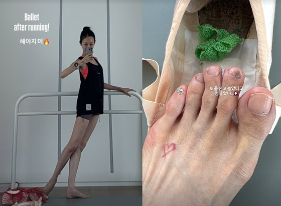 발레무용가 윤혜진이 멍든 발가락을 공개했다.
