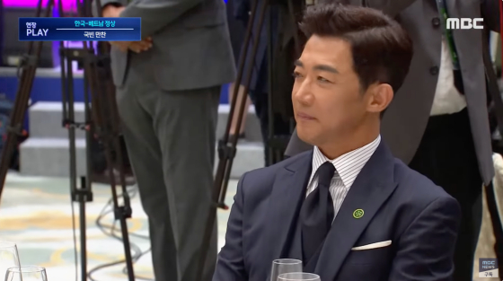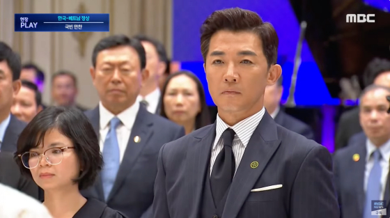 이 가운데 안재욱의 모습도 포착돼 연일 화제를 모으고 있다. 그는 격식을 차린 정장 차림으로 국빈 만찬에 참석했으며, 정의선 현대차그룹 회장 옆자리에 착석해 더욱 눈길을 끌었다.