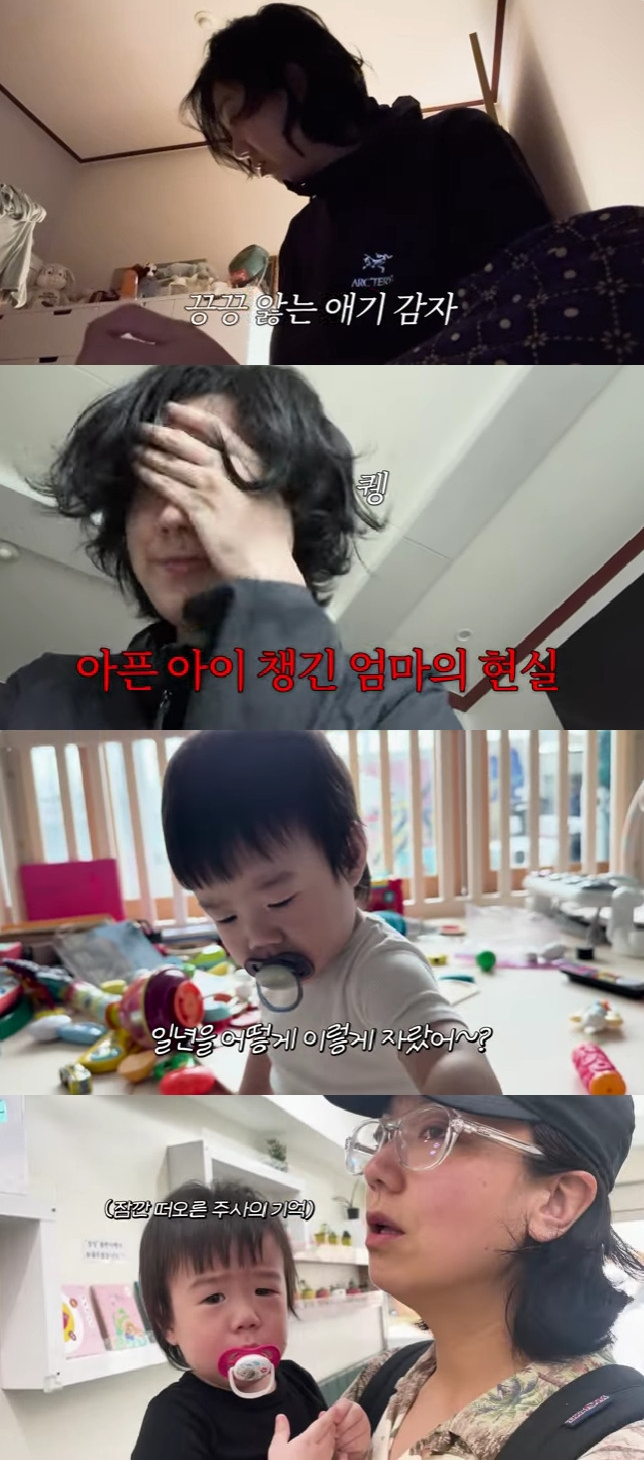 공개된 영상 속 이은형은 "현조가 지금 열이 38.5도다. 현조가 그래도 좀 괜찮았는데 지금 좀 힘든지 찡찡거린다"면서 새벽 6시까지 아들 현조를 챙겼고, 열이 내린 모습에 안도했다.