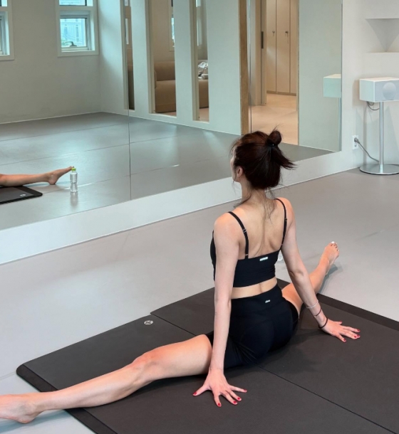 사진 속 손담비는 매트 위에서 다리를 180도로 벌린 채 스트레칭에 집중하고 있다.