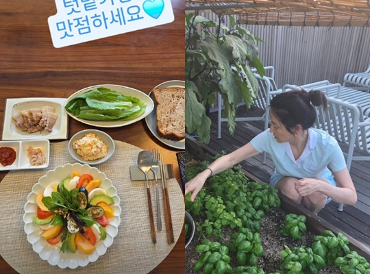 공개된 사진 속에는 직접 키운 작물로 차린 정갈한 상이 담겨 있어서 눈길을 끈다. 배우이자 엄마, 아내로서 차린 밥상에 감탄이 절로 나온다.