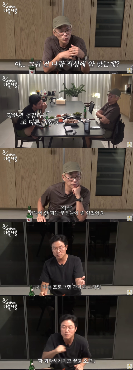 이에 나 PD는 "이 포인트 완전히 공감한다"며 "우리 같은 사람들 입장에서는 납득이 안 되는 게 좀 있었다. 소리 지르고 윽박 질러서 뭐 찍어서 내고, 누가 다른 프로그램 간다고 하면 협박해서 끌고 오고 그런 모습이 좋은 PD라는 게 있었다"고 떠올렸다.