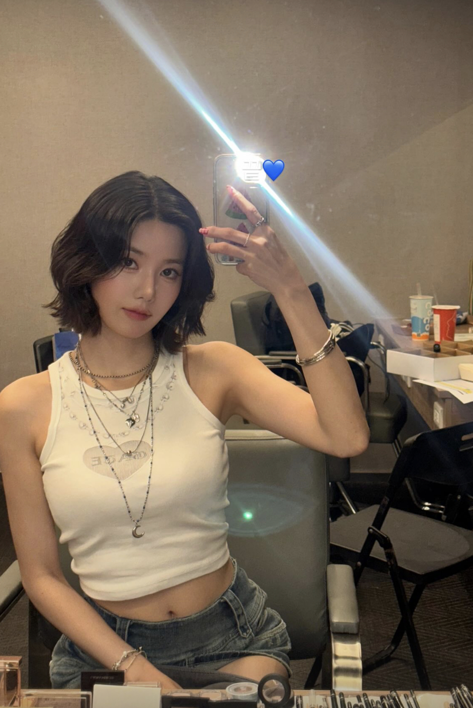 사진 속 권은비는 허리 라인이 드러나는 화이트 나시 톱을 입고 거울 앞에서 플래시를 터뜨리며 셀카를 남겼다. 탄탄한 어깨와 잘록한 허리 라인이 강조돼 보는 이들의 시선을 사로잡았다.