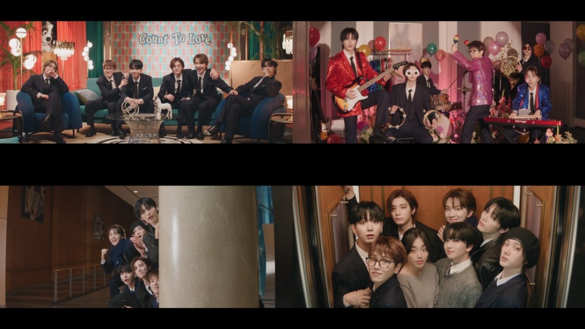 뮤직비디오 역시 보는 재미로 가득하다. 여섯 멤버는 가상의 연애 프로그램 진행자로 등장해 한 커플을 응원한다. 이들을 이어주려는 귀여운 고군분투가 유쾌하게 펼쳐진다. 슈트와 캐주얼 등 다양한 패션을 소화하는 비주얼도 돋보인다. 뮤직비디오에는 일본 인기 배우 이타가키 리히토가 출연해 화제를 모았다.