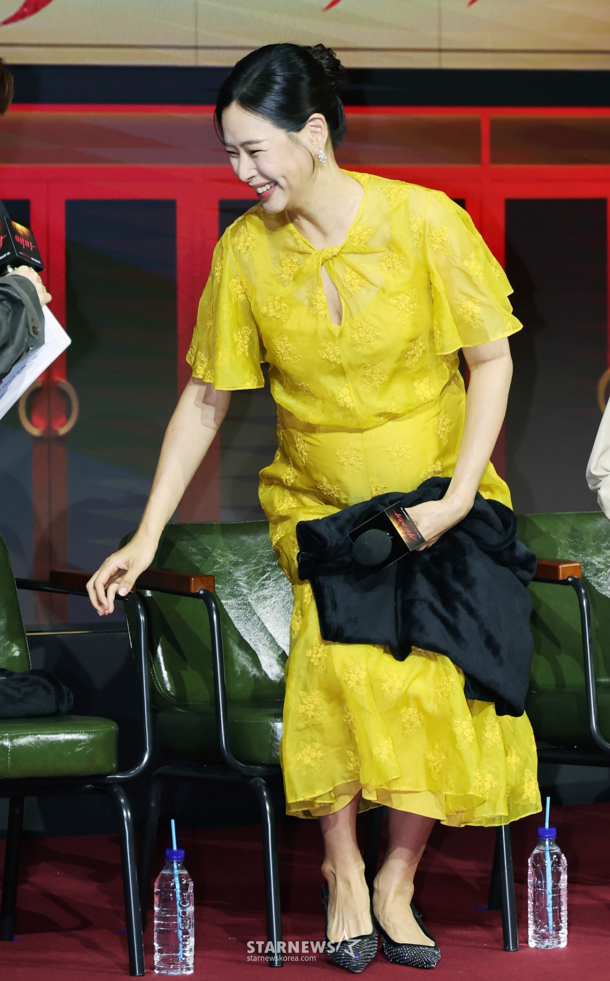 배우 이하늬가 18일 오전 서울 마포구 호텔나루 서울 엠갤러리에서 진행된 넷플릭스 오리지널 시리즈 '애마' 제작발표회에 참석해 자리에 앉고 있다.