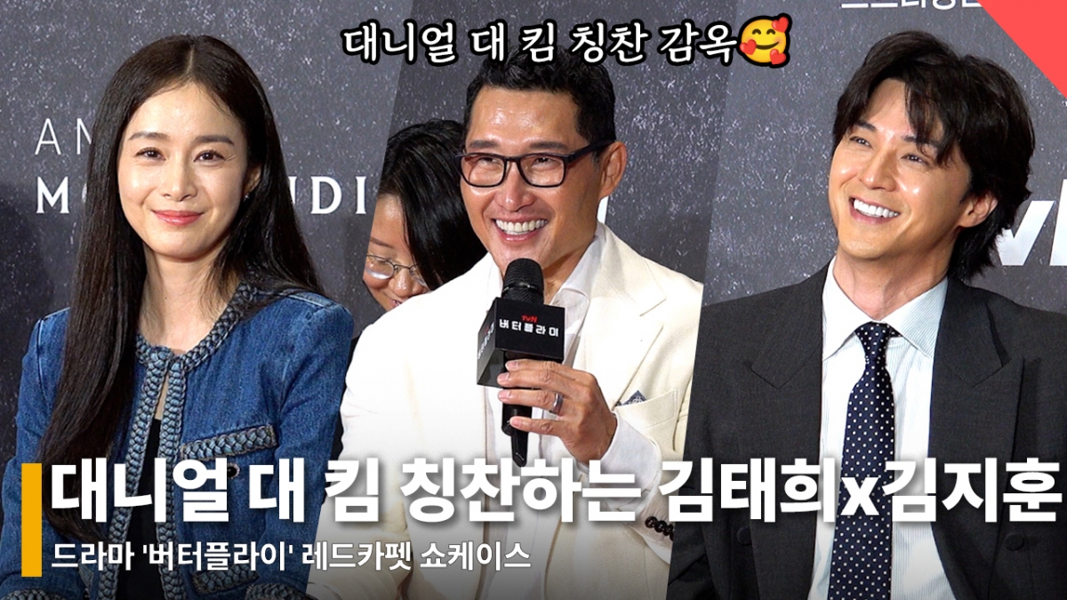 이날 배우 대니얼 대 킴, 김지훈, 김태희가 인터뷰에 답하고 있다.