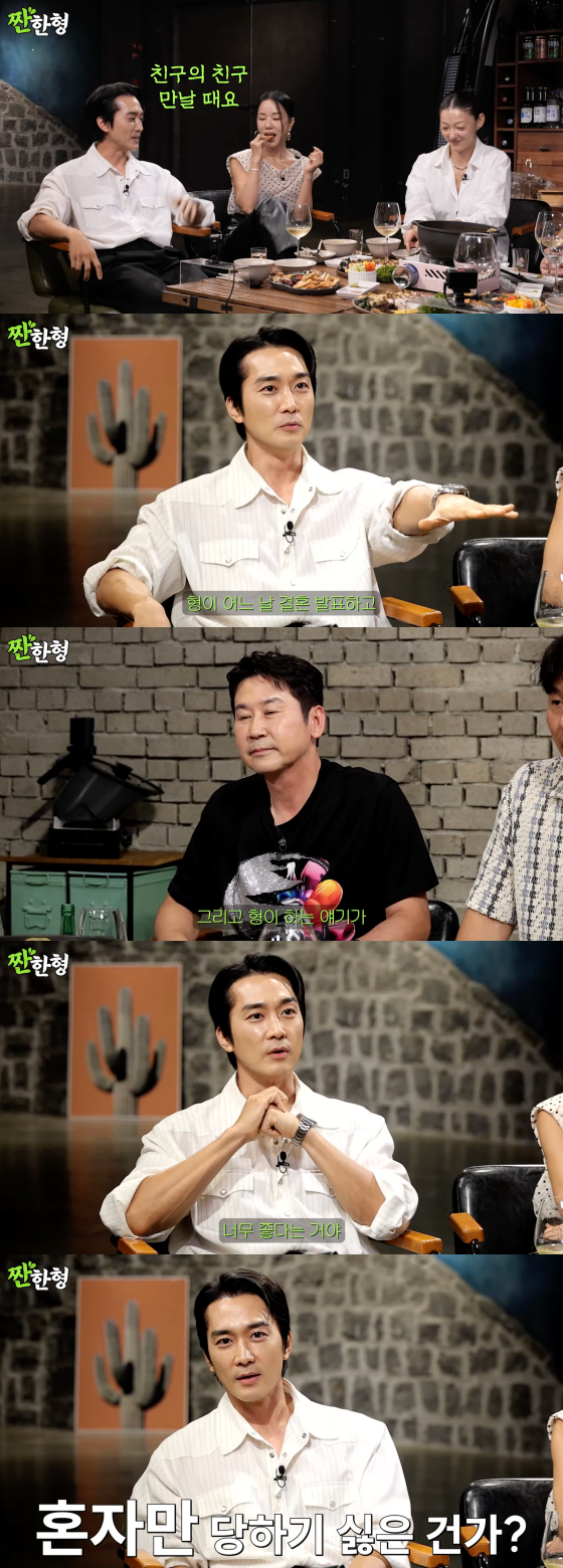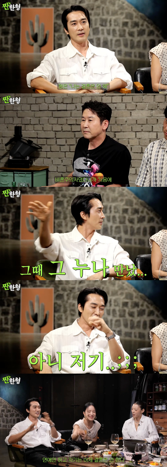 이날 송승헌은 평소 절친한 신동엽에 대해 "원래 (신)동엽 형이 비혼주의자였다"며 "형님이 어렸을 때는 결혼을 안 한다고 했었다"고 밝혔다.