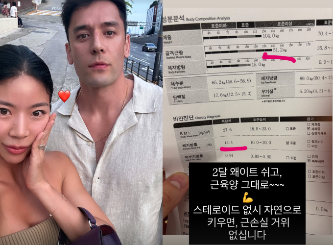 줄리엔강은 "2달 웨이트 쉬고 근육량 그대로"라며 "스테로이드 없이 자연으로 키우면 근손실 거의 없습니다"라고 강조했다.