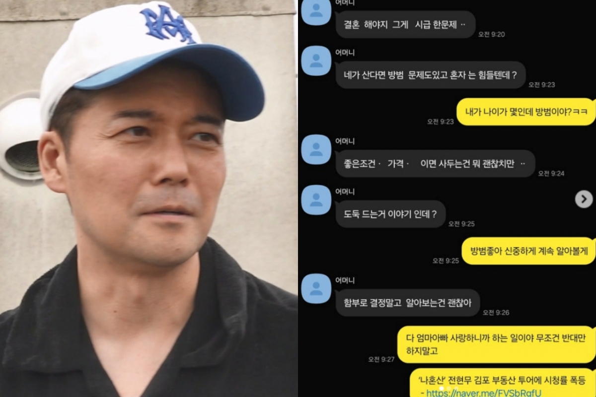 공개된 사진 속에는 전현무와 모친이 나눈 대화 내용이 담겼다. 어머니는 '결혼해야지. 그게 시급한 문제. 네가 산다면 방범 문제도 있고 혼자는 힘들 텐데?', '좋은 조건, 가격이면 사두는 건 뭐 괜찮지만', '함부로 결정 말고 알아보는 건 괜찮아'라고 했다.