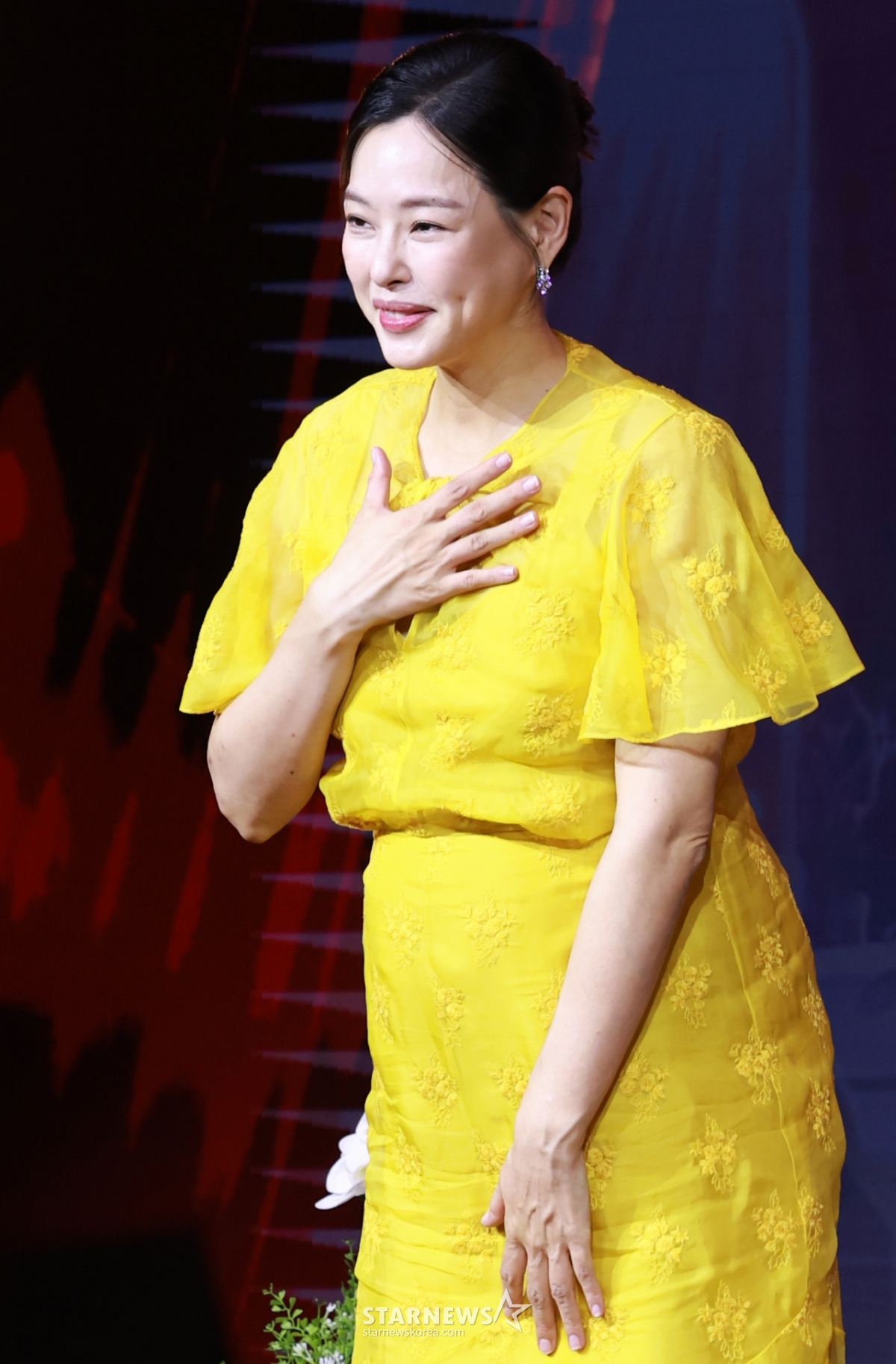 공개된 사진 속에는 지난 18일 서울시 마포구 호텔 나루 서울 엠갤러리에서 진행된 넷플릭스 시리즈 '애마'의 제작발표회에 참석한 이하늬의 모습이 담겨있다. 노란색 드레스를 입은 이하늬는 만삭의 몸에도 화사한 미모를 자랑하고 있다.