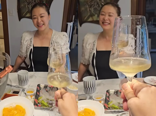심진화는 20일 자신의 개인계정에 집에서 샴페인 파티를 즐기는 사진을 게재했다.