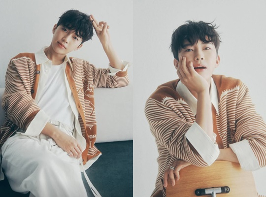 공개된 사진 속 임영웅은 화이트 팬츠에 화이트 셔츠로 댄디함을 자랑했고 브라운톤의 카디건을 매치해 훈훈한 모습을 보여주고 있다.