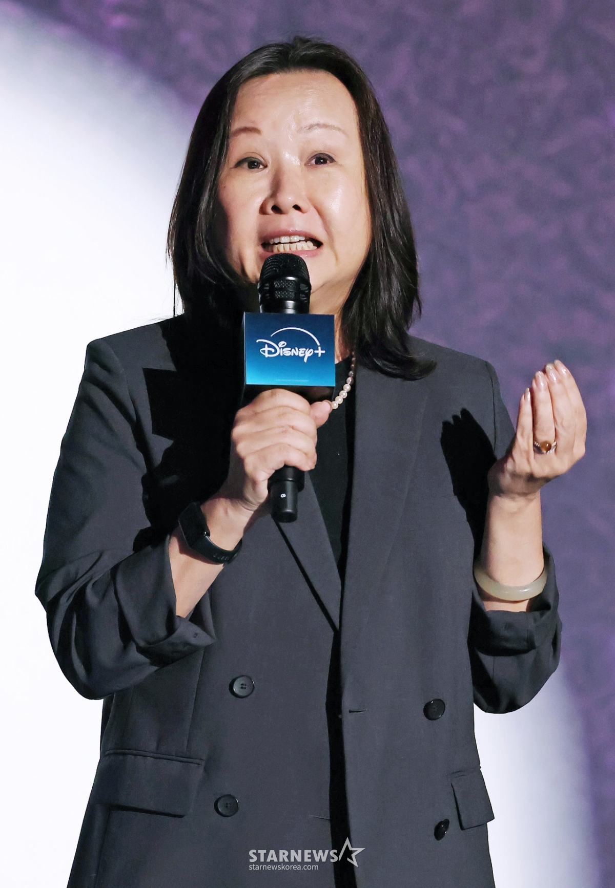 캐롤 초이 월트디즈니 컴퍼니 아태지역 오리지널 콘텐츠 전략총괄이 20일 오후 서울 CGV용산아이파크몰에서 진행된 디즈니+ 오리지널 시리즈 '북극성' 크리에이터스 토크 행사에 참석해 인사말을 하고 있다.
