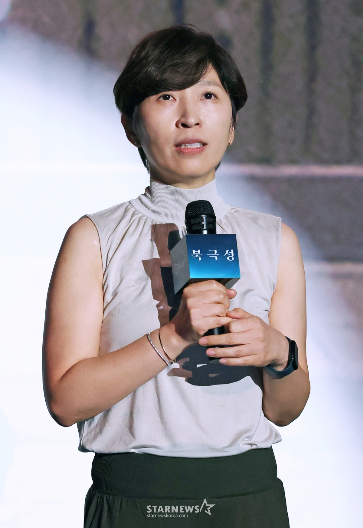 정서경 작가가 20일 오후 서울 CGV용산아이파크몰에서 진행된 디즈니+ 오리지널 시리즈 '북극성' 크리에이터스 토크 행사에 참석해 작품설명을 하고 있다.