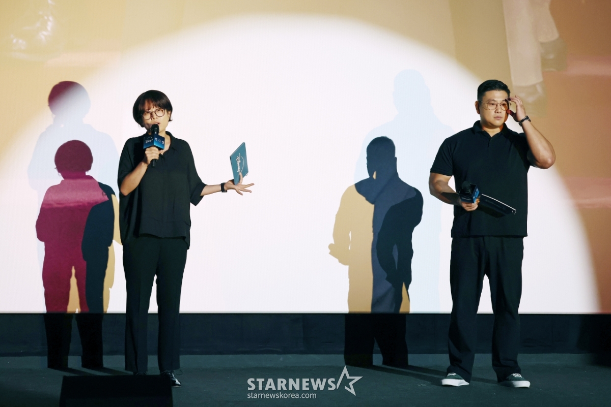 김희원, 허명행 감독이 20일 오후 서울 CGV용산아이파크몰에서 진행된 디즈니+ 오리지널 시리즈 '북극성' 크리에이터스 토크 행사에 참석해 작품설명을 하고 있다.