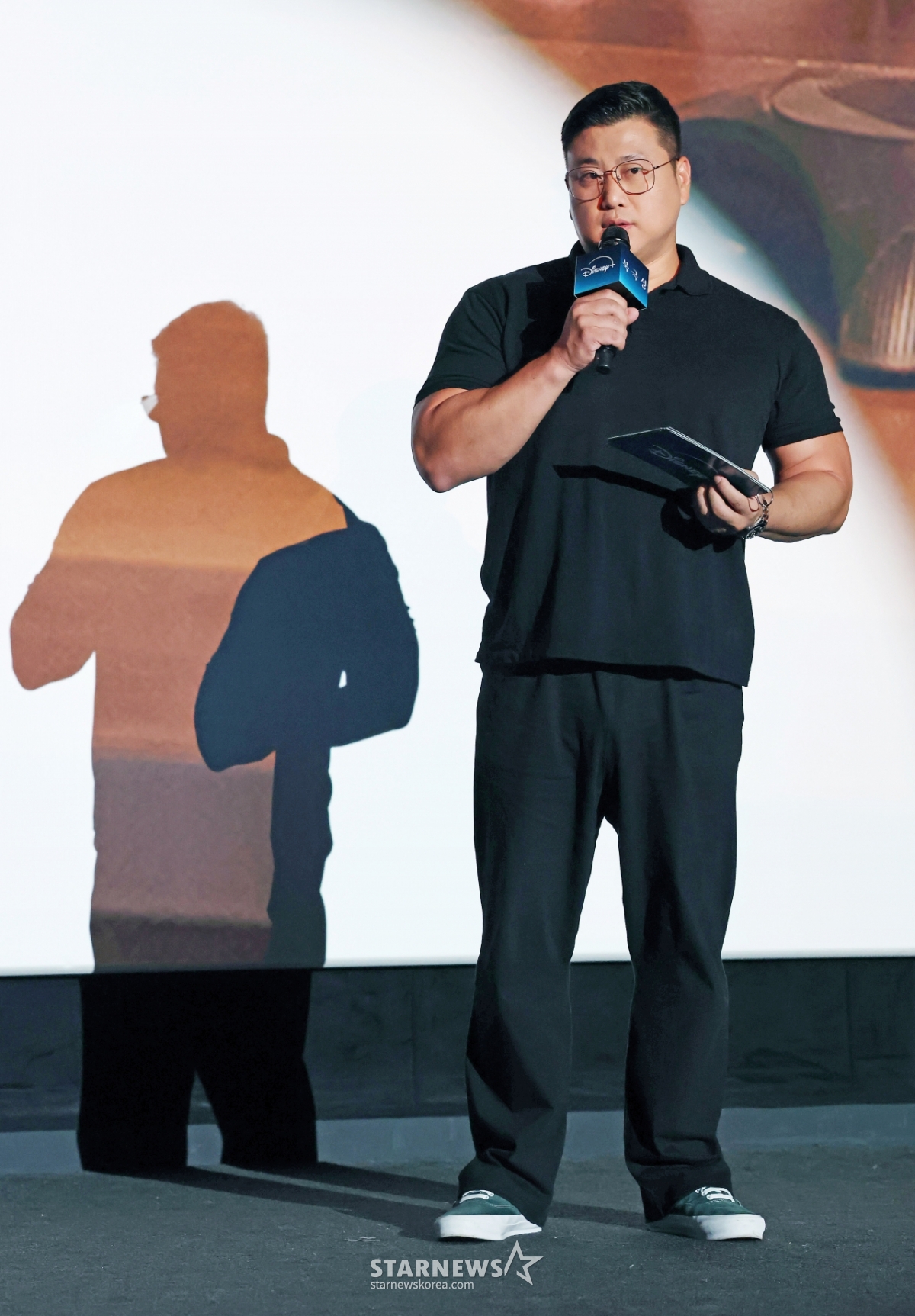 허명행 감독이 20일 오후 서울 CGV용산아이파크몰에서 진행된 디즈니+ 오리지널 시리즈 '북극성' 크리에이터스 토크 행사에 참석해 작품설명을 하고 있다.
