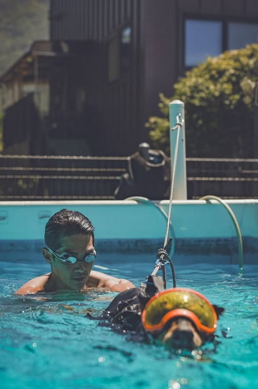 배정남은 20일 개인 채널을 통해 "우리 아지매 나이도 많고 갈수록 뒷다리 근육이 빠지네예. 여름엔 애들은 수영과 수영재활이 최고"라는 글과 함께 여러 사진과 영상을 공개했다.