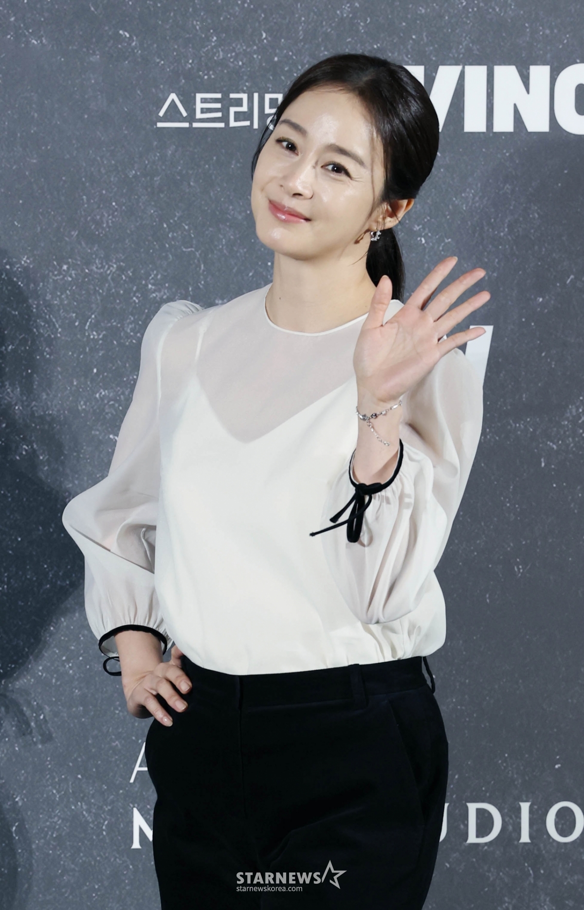 배우 김태희가 21일 오전 서울 CGV용산아이파크몰에서 진행된 아마존 오리지널 시리즈 '버터플라이' 기자간담회에 참석해 포즈를 취하고 있다.