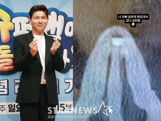 사진 속 제이쓴의 코뼈는 심하게 휘어져 있어 걱정을 자아냈다.