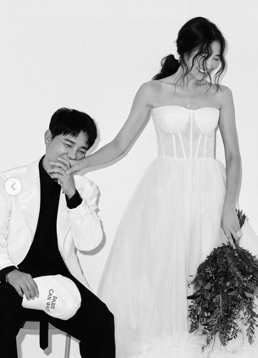 공개된 사진 속에는 임창정 서하얀 부부의 웨딩 화보가 담겨있으며 두 사람의 아름다운 미소가 훈훈함을 안긴다.