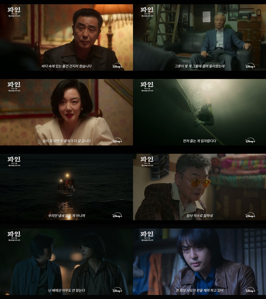 '파인'은 1977년, 바다 속에 묻힌 보물선을 차지하기 위해 몰려든 근면성실 생계형 촌뜨기들의 속고 속이는 이야기. 시리즈 '카지노', 영화 '범죄도시' 등을 연출한 강윤성 감독과 웹툰 '내부자들', '미생'의 윤태호 작가가 의기투합했다.