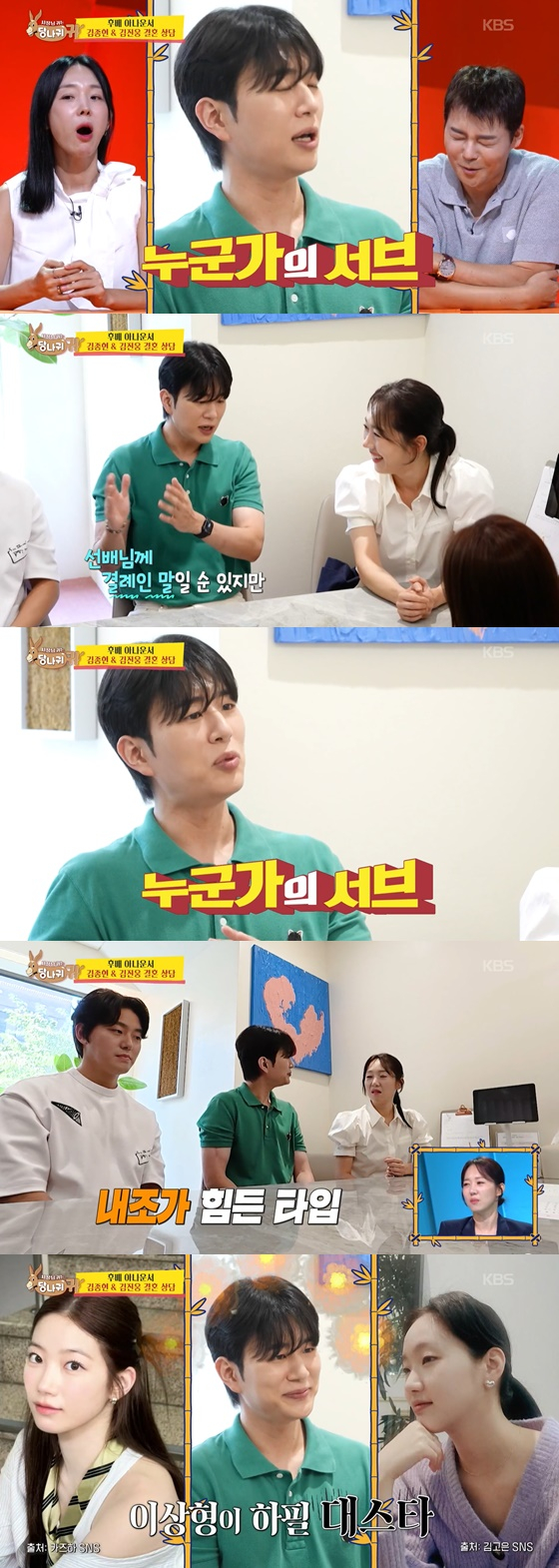 그러자 김진웅 아나운서는 "저는 솔직히 도경완 선배처럼은 못 산다"라며 "선배님께 결례인 말일 수 있지만 전 누군가의 서브가 되어서는 못 산다"라고 발언했다.