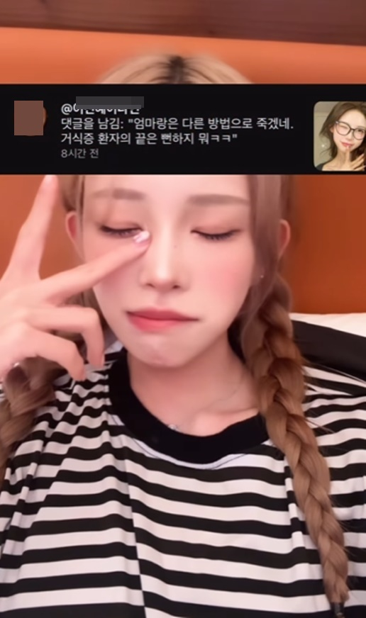 최준희는 24일 자신의 개인계정에 최진실과 관련된 악플을 박제해 영상을 올렸다. 해당 악플에는 "엄마랑은 다른 방법으로 죽겠네. 거식증 환자의 끝은 뻔하지 뭐"라는 글이 적혀있다.