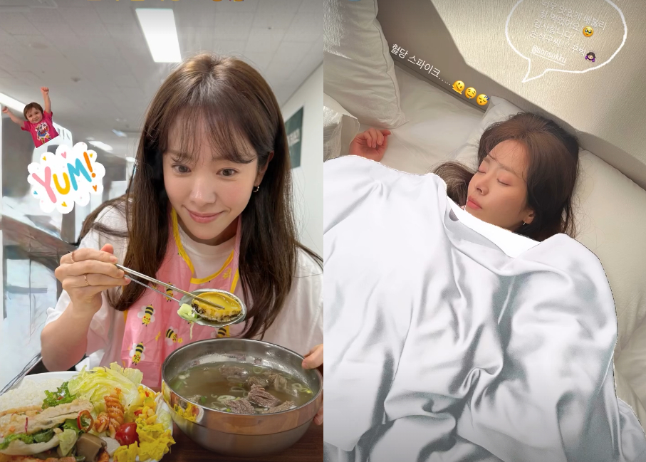 또한 한지민은 "혈당 스파이크"라며 밥을 먹은 뒤 잠든 사진을 공개하며 "너무 맛있게 배불리 잘 먹었어요. 감사합니다. 손석구 씨. 꾸벅"이라며 고마운 마음을 전했다.