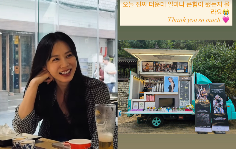손예진은 25일 커피차 인증과 함께 "오늘 진짜 더운데 얼마나 큰 힘이 됐는지 몰라요 Thank you so much"라고 전했다.