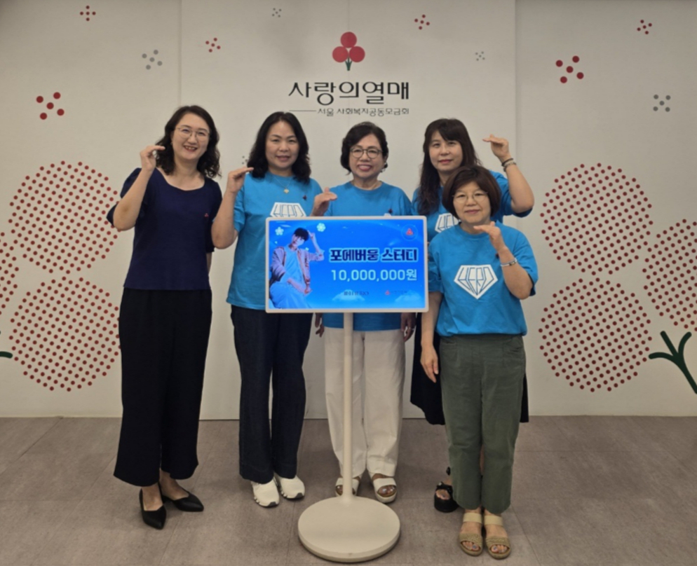 '포에버웅 스터디'는 지난해 7월 임영웅 데뷔 8주년을 맞아 나눔리더스클럽 74호 회원으로 가입하며 1000만 원을 기부해 집중호우 피해 복구를 도왔다. 같은 해 12월에는 임영웅 콘서트를 기념해 616만 원을 전달, 아동 난방비와 방한용품 지원에 힘을 보탰다. 올해 6월에는 임영웅의 생일을 맞아 '우리서울, 희망여름 착!착!착! 나눔캠페인' 1호 기부자로 참여해 300만 원을 기부하며 서울지역 취약계층의 혹서기 대비를 도왔다.