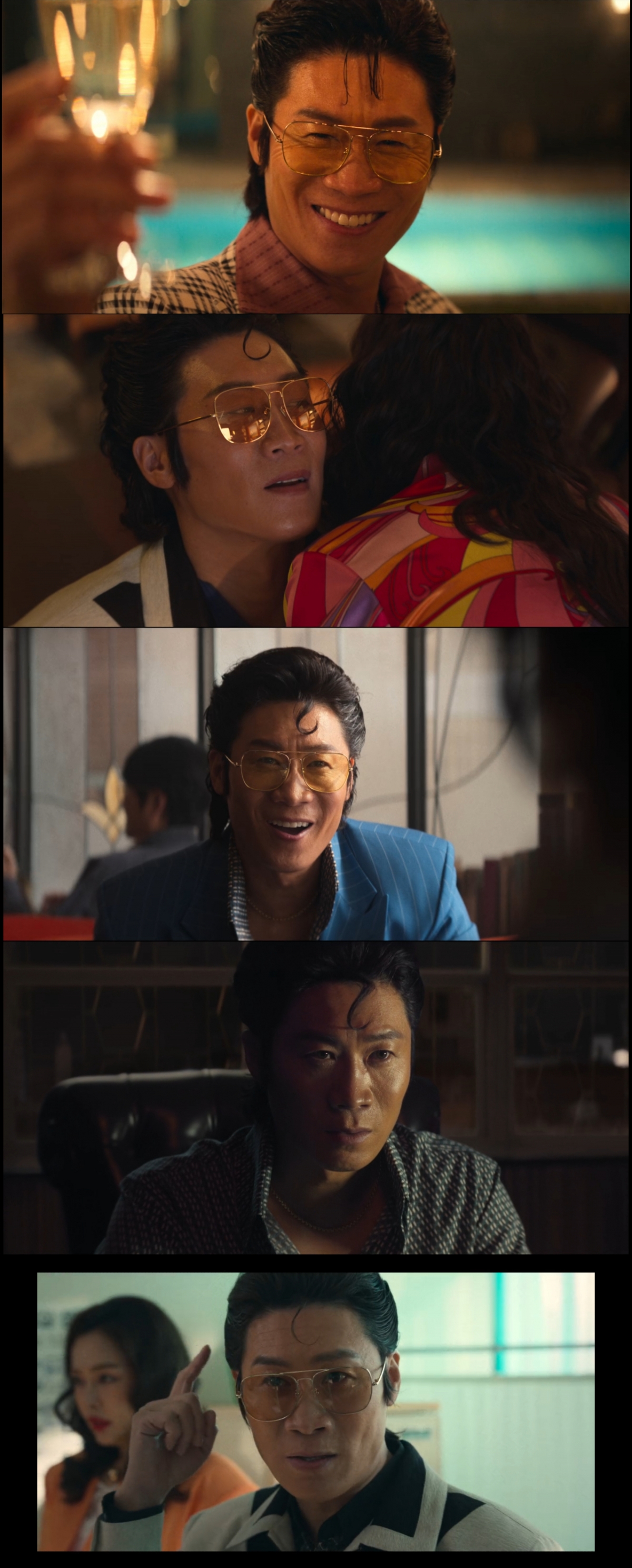 진선규는 구중호의 양면성을 탁월하게 표현한다. 권력자 앞에서는 굽실대는 비굴함을, 약자를 무참하게 짚밟는 가혹함을 유려하게 오간다. 허세 가득한 제스처와 특유의 말투, 80년대 충무로 분위기를 반영한 외형까지 완벽히 녹여내며 캐릭터에 생명력을 불어넣었다.