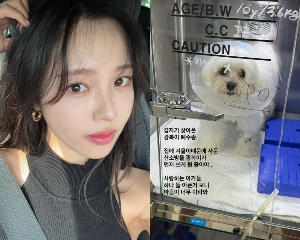 26일 이솔이는 SNS에 사진 한 장을 게재했다. 공개된 사진에는 이솔이, 박성광 부부의 반려견 광복이가 동물병원 산소방에 입원 중인 모습이 담겨 안타까움을 자아냈다.