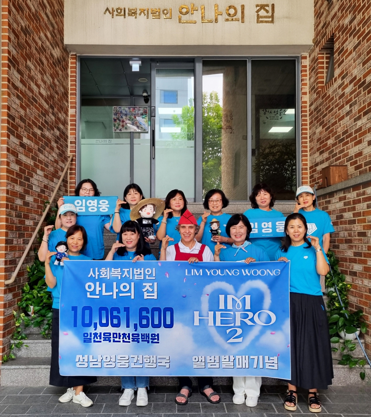 임영웅 팬클럽 영웅시대 성남영웅건행국은 임영웅의 정규 2집 발매를 기념해 8월 25일 사회복지법인 안나의 집(대표 김하종 신부)에 1006만 1600원의 기부금을 전달하고, 노숙인들을 위한 무료 급식 봉사 활동을 했다.
