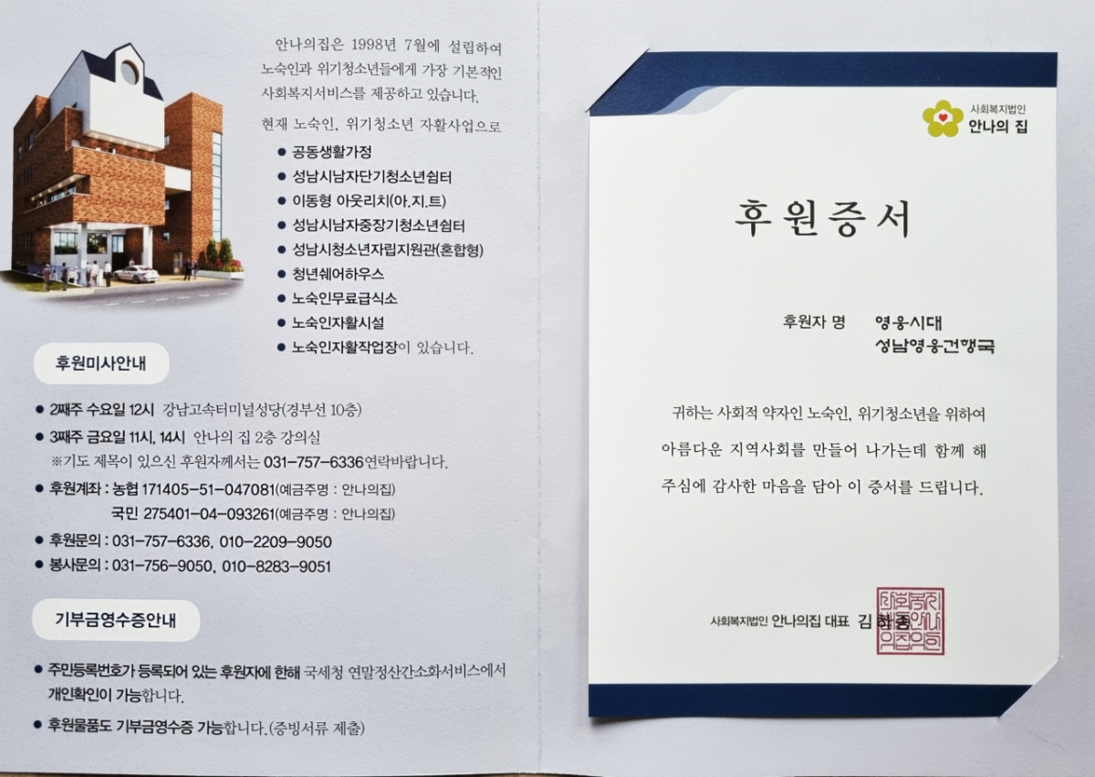 35년 전 이탈리아에서 한국으로 귀화해 안나의 집은 운영 중인 김하종 신부는 큰마음을 모아 준 영웅시대 '성남영웅건행국' 회원들에게 감사의 뜻을 표했다.