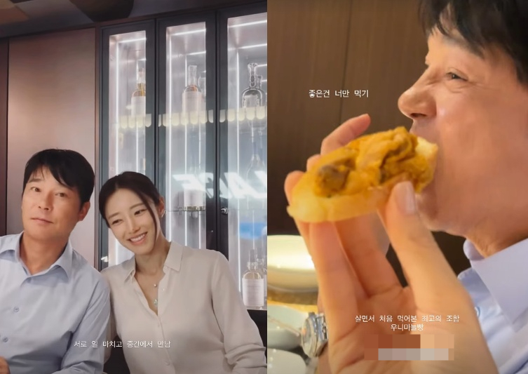 영상과 함께 서하얀은 "서로 일 마치고 중간에서 만남"이라며 "좋은 건 너만 먹ㄱ기. 살면서 처음 먹어본 최고의 조합. 우니마늘빵"이라고 적었다.