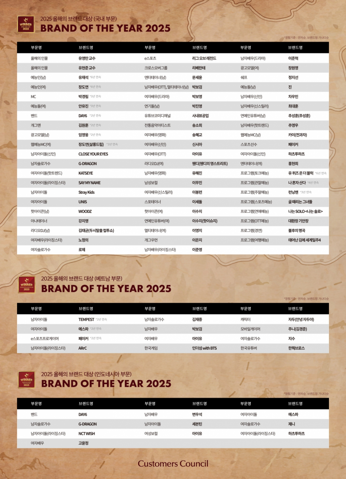 2025 올해의 브랜드 대상 인물·문화 부문은 언론보도, 방송프로그램, SNS, 주요 포털사이트의 콘텐츠평판과 전문기관 인증 등에 기초한 주요 이슈 분석을 통해 후보 브랜드를 선별하고, 이들을 대상으로 지난 6월 30일부터 7월 13일까지 국내, 베트남, 인도네시아에서 2주간 소비자 투표가 진행됐다. 선정된 인물·문화 브랜드는 '2025 올해의 OOO'라는 영예의 타이틀을 차지하게 된다.