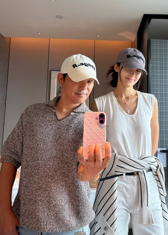 공개된 사진에는 커플 모자를 쓰고 휴대폰 카메라로 촬영 중인 임창정, 서하얀 부부의 모습이 담겨 있다. 임창정은 바지 주머니에 손가락을 넣고, 다른 한 손으로 휴대폰을 든 채 옅은 미소를 띠고 있다. 서하얀은 모자에 다 가려질 만큼 작은 얼굴로 눈길을 끈다.