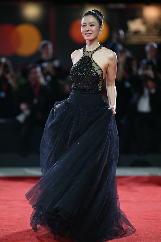 배우 손예진이 베니스 국제영화제에서 블랙드레스를 입고 우아한 미모를 뽐냈다.