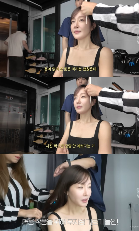 엄지원은 헤어 스타일링을 받으며 "짧은 머리 안 되냐. 단발"이라고 말했다.