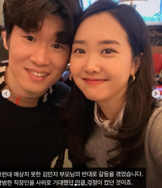 김민지 전 아나운서는 31일 자신의 개인계정에 "부모님 반대에도 결혼한 아나운서"라는 인터넷 게시물을 게재했다. 이와 함께 김민지 전 아나운서는 "역시 나와 남편이 만나 결혼한 이야기는 도파민의 민족을 만족시키기엔 턱 없이 밋밋한 듯"이라며 "연애할때도 온갖 배신과 복수, 치정이 얽힌 스토리가 생성되더니 최근엔 결혼반대설, 이혼설, 셋째 임신설까지 있는것 같다"라고 밝혔다. 김민지 전 아나운서는 "이혼하고 임신이라니 와우"라고 덧붙였다.