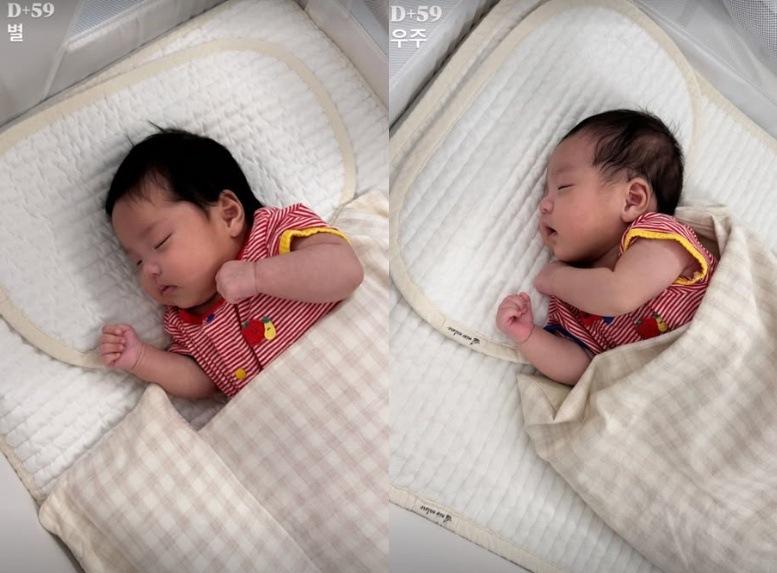사진 속 우주별은 침대에 누워 곤히 자는 모습으로 미소를 자아낸다.