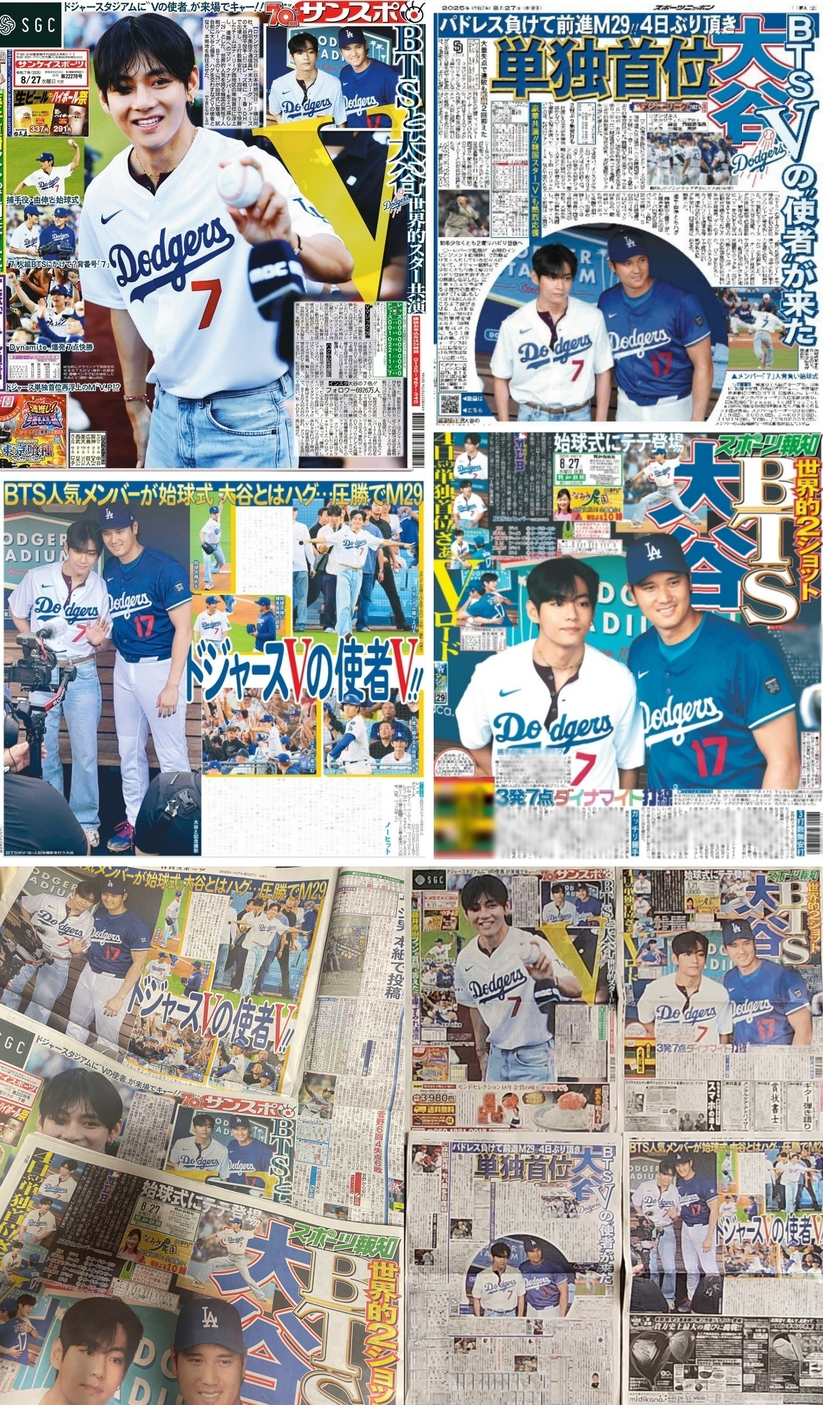 아사히신문계열사 닛칸 스포츠(NIKKAN SPORTS), 요미우리신문의 자회사인 스포츠 호치(Sports Hochi), 산케이 스포츠(Sankei Sports) 스포츠 니폰( Sports Nippon), 데일리 스포츠, 니칸 스포츠(nikkansports) 등 5개의 일본 스포츠 신문의 1면에는 뷔의 시구 모습이 실렸다.