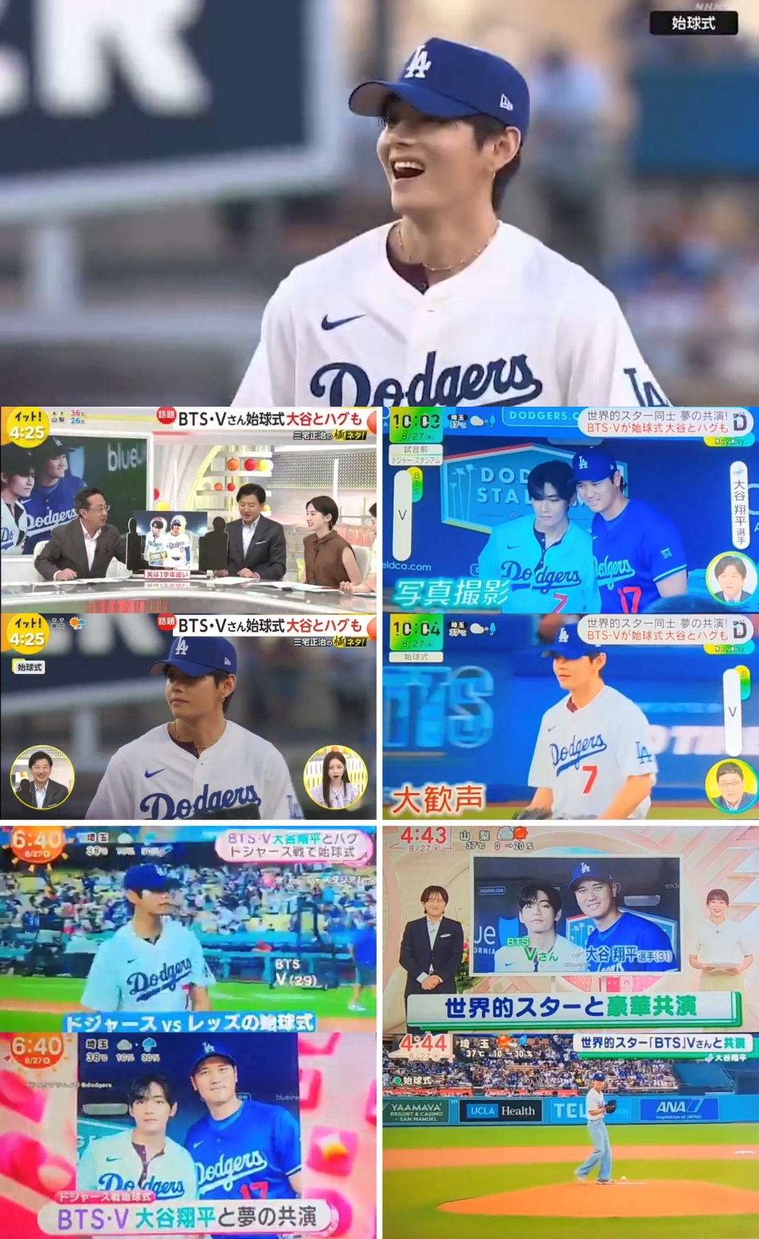 일본 방송도 뷔의 시구 소식을 전하며 흥분을 감추지 못했다. NHK는 물론 니혼TV의 오전 뉴스프로그램 오하!4(Oha! 4)와 오후 뉴스 프로그램, 엔터테인먼트 토크쇼 데이데이(DayDay)와 후지TV의 메자마시 등 일본 전역의 다양한 방송프로그램에서는 "세계적인 스타 뷔가 떠나갈 듯한 함성을 받으며 시구했다"고 설명했다. 뷔와 오타니와의 만남에 대해서 '한·일을 대표하는 세계적 스타의 꿈의 협연'이라고 조명했다.