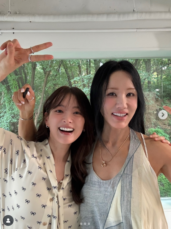 사진 속 천우희는 엄정화와 어깨동무를 한 채 브이 포즈를 취하며 해맑게 웃고 있는 모습. 두 사람은 유튜브 콘텐츠 촬영을 위해 만나 화기애애한 분위기를 자아내며 팬들에게 반가움을 안겼다.